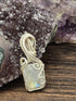 This pendant features a luminous Moonstone wrapped in silver-plated copper wire with soft curves and a delicate silhouette. The stone’s subtle glow shifts with the light, evoking moonlit skies and quiet intuition.