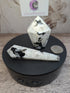 Rainbow Moonstone 2 piece bundle set. Cupcake point is approx 2.50 inch and has a little blue flash. The Wand/scepter is approx 3.75 inch, has a litttle blue flash and a hidden rainbow. Nice couple of Quartz patches seen.