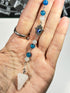 Clear Quartz Pendulum with a meticulously handcrafted beaded chain that includes Blue Apatite & White Moonstone Beads and includes a Crackle Quartz top bead.