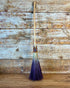 Velvet Oath is a handcrafted mid-size besom standing approximately 38 inches tall, carrying a sovereign and composed presence rooted in earned authority rather than display. Built on a natural wooden handle and finished with natural bristles arranged in a hand-dyed ombré transition from pale wheat to deep plum, this broom holds a quiet intensity that reveals itself gradually as it is turned in the light.
