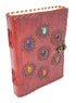 Description:Seven Chakra leather journal with colored stones inlayed into the cover. Latch journal with handmade tree free organic paper. 6" x 8"